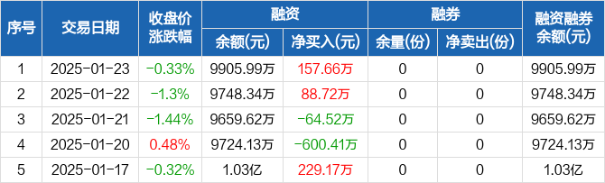 光伏ETF:融资净买入157.66万元,融资余额9905.99万元(01-23)