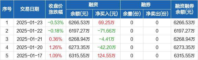 科创创业50ETF:融资净买入69.25万元,融资余额6266.53万元(01-23)