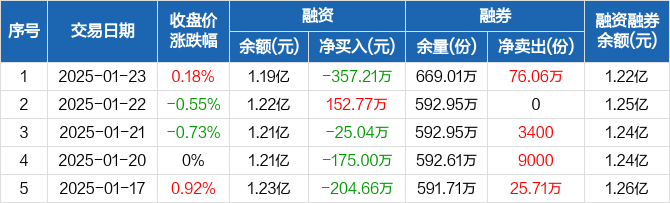 养殖ETF:融资净偿还357.21万元,融资余额1.19亿元(01-23)