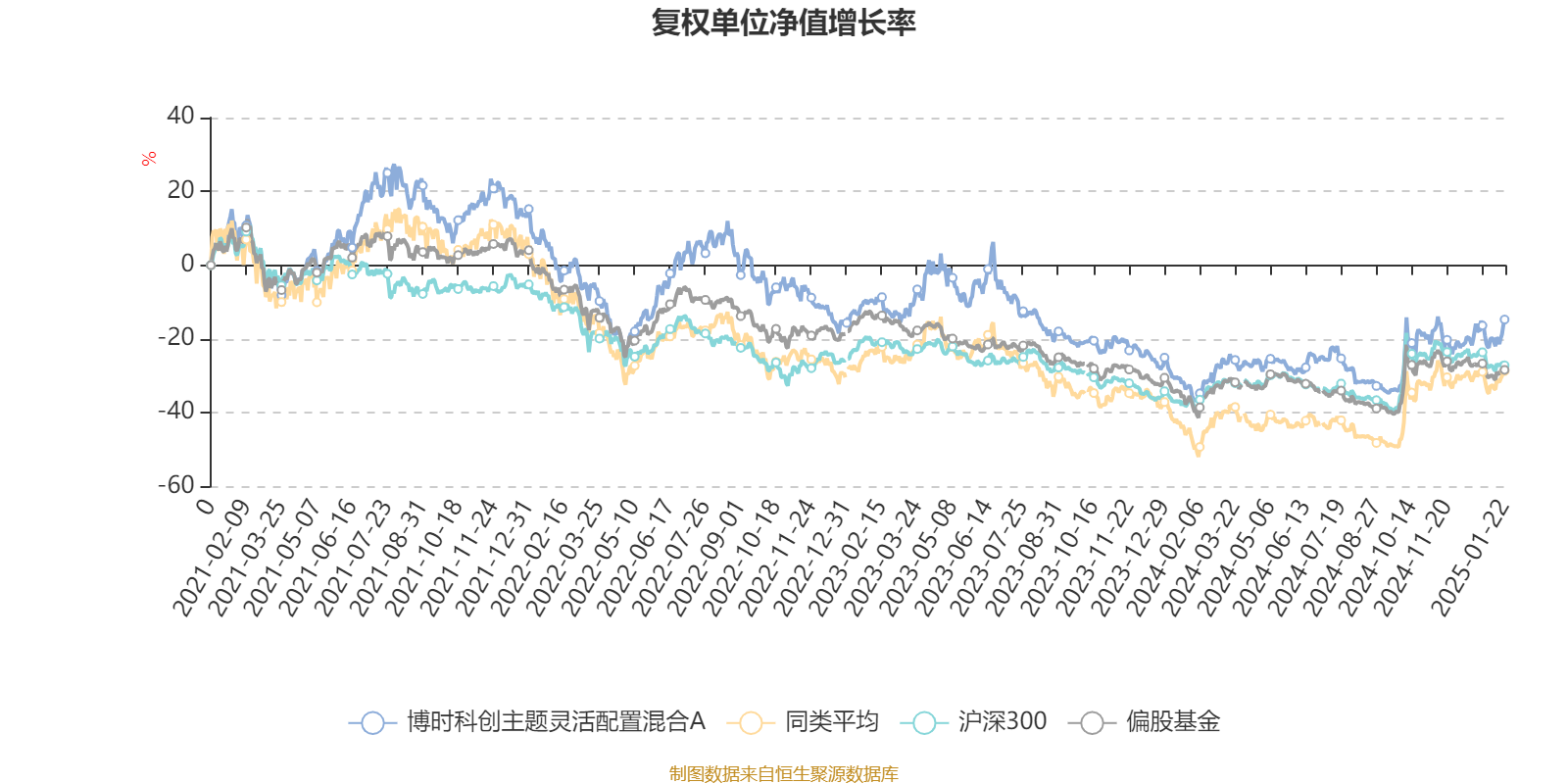 截至1月22日,博时科创主题灵活配置混合A近三个月复权单位净值增长率为3.87%,位于同类可比基金86/202;近半年复权单位净值增长率为14.04%,位于同类可比基金164/202;近一年复权单位净值增长率为28.49%,位于同类可比基金114/191;近三年复权单位净值增长率为-18.66%,位于同类可比基金73/130。
