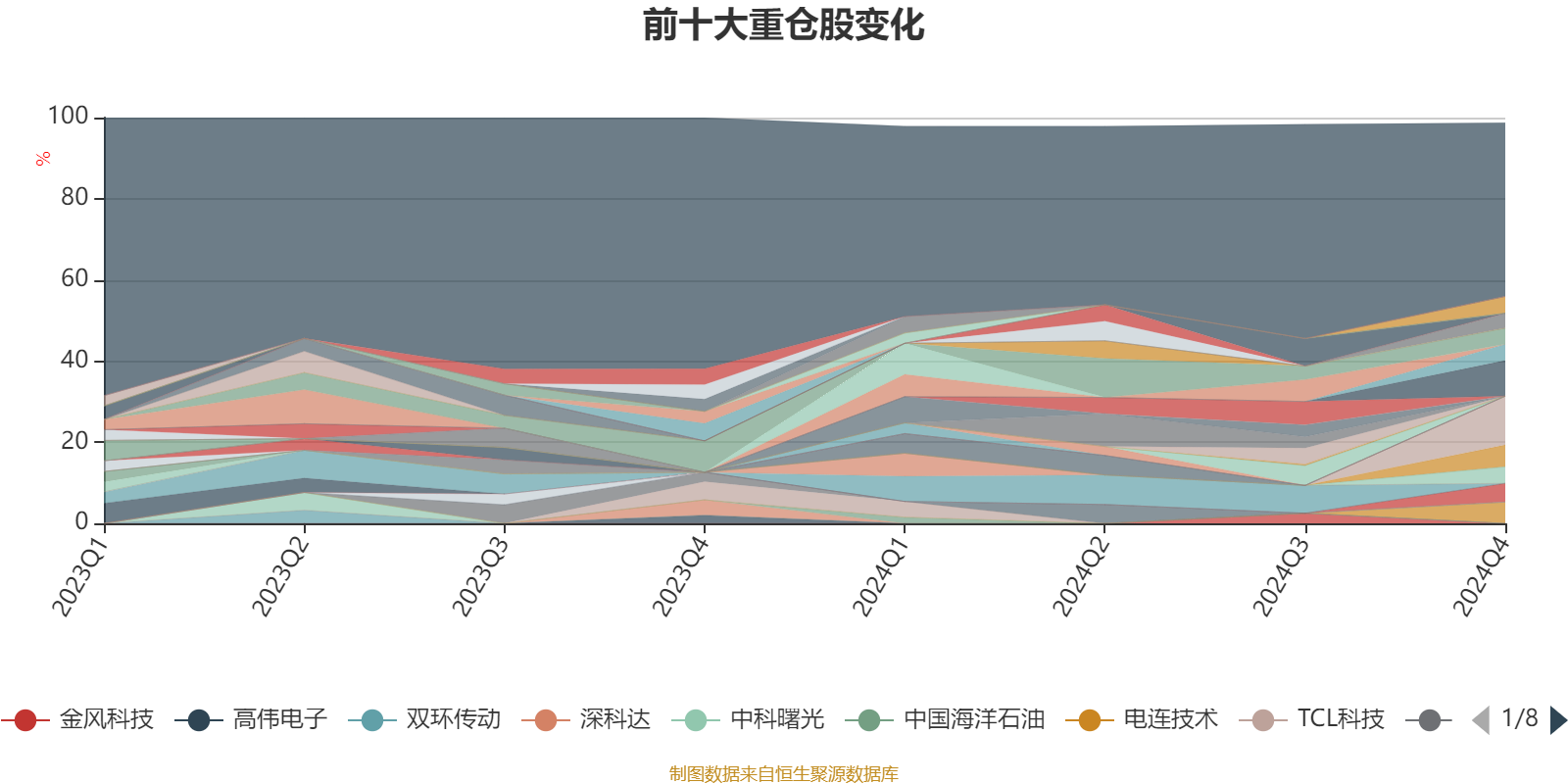 截至2024年四季度末,基金十大重仓股分别是寒武纪、小米集团-W、中兴通讯、电连技术、恒玄科技、甬矽电子、中芯国际、立讯精密、润泽科技、海光信息。