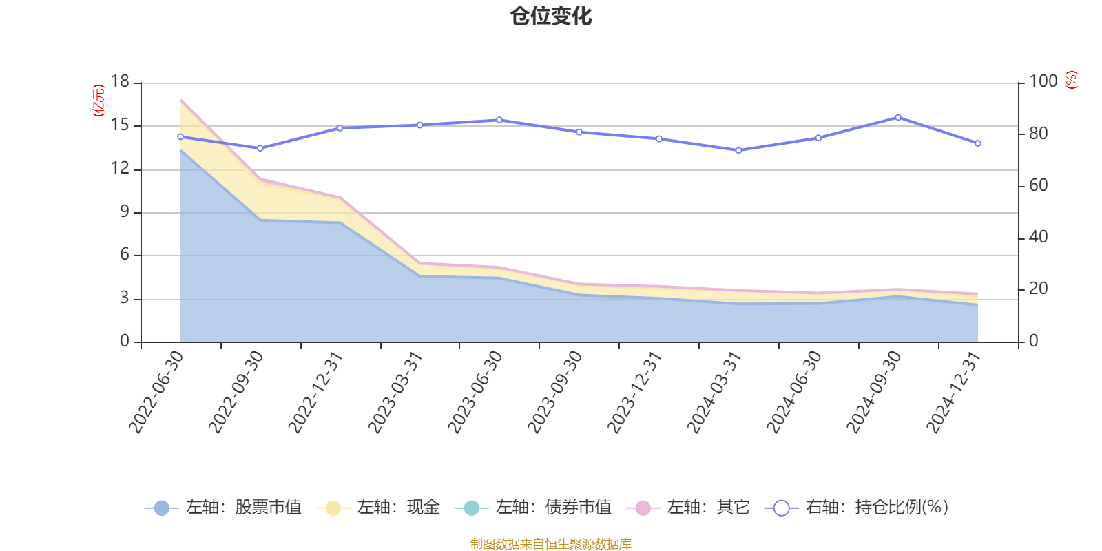 据定期报告数据统计,成立以来平均股票仓位为80.07%,同类平均为84.66%。2024年三季度末基金达到86.61%的最高仓位,2024年一季度末最低,为73.92%。