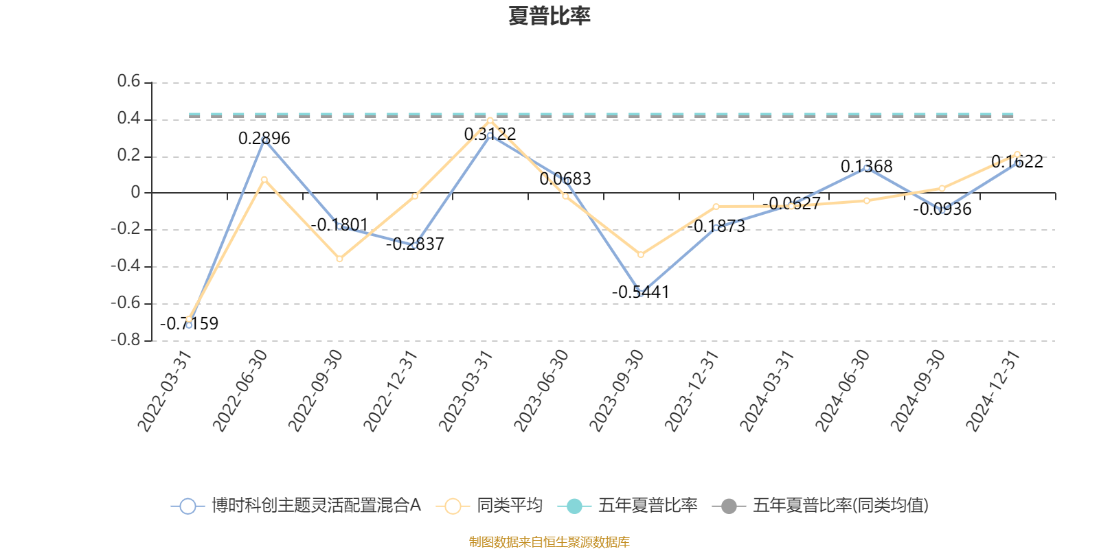 截至12月31日,基金近三年夏普比率为-0.142,位于同类可比基金106/130。