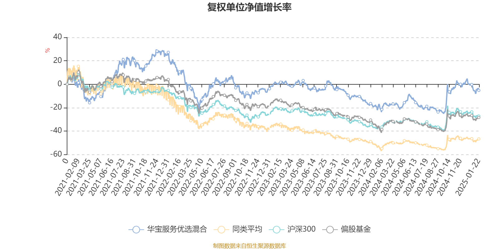 截至1月22日,华宝服务优选混合近三个月复权单位净值增长率为-1.24%,位于同类可比基金312/646;近半年复权单位净值增长率为17.12%,位于同类可比基金144/645;近一年复权单位净值增长率为21.52%,位于同类可比基金201/633;近三年复权单位净值增长率为-19.11%,位于同类可比基金139/447。