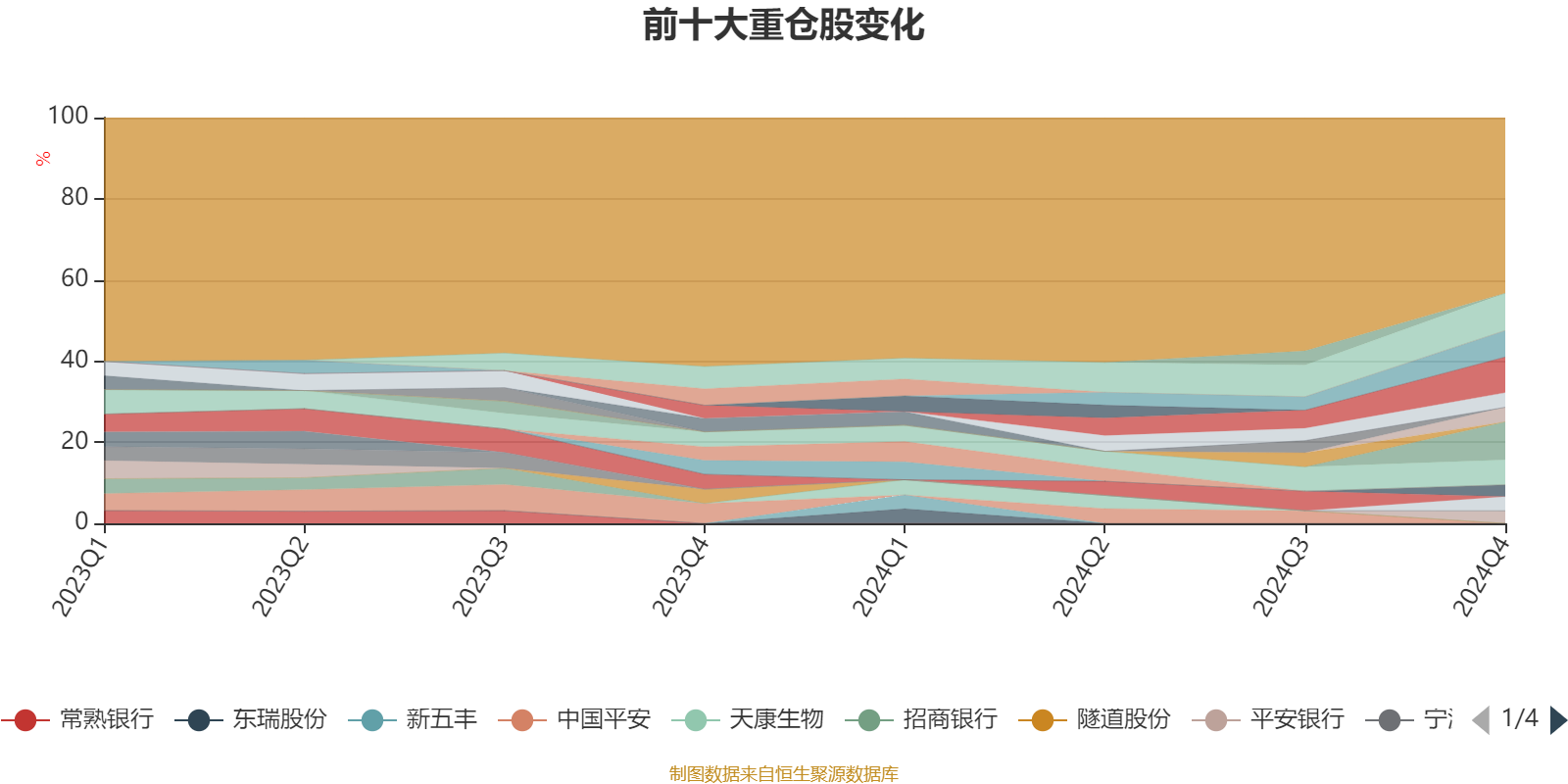 基金管理人在四季报中表示,展望 2025 年,继续关注国内经济企稳回升带来的投资机会,未来关注低估值的地产及地产链、服务消费等板块的投资机会,同时还可以关注充分调整后已经具有估值性价比优势的新能源、医药和消费品等板块的投资机会。