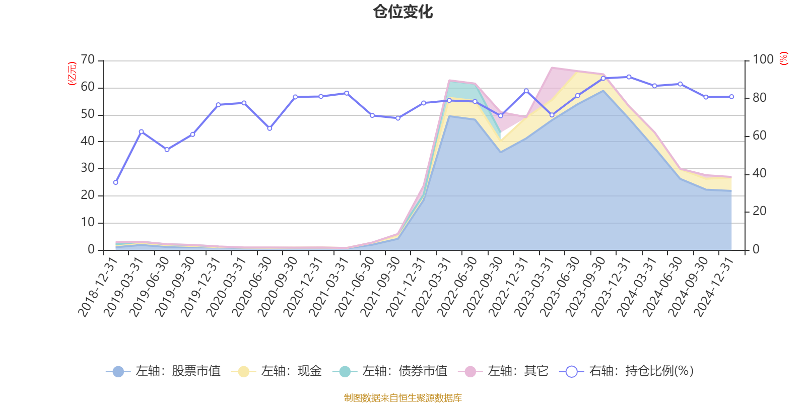 据定期报告数据统计,近三年平均股票仓位为81.88%,同类平均为79.89%。2023年末基金达到91.33%的最高仓位,2018年末最低,为35.69%。