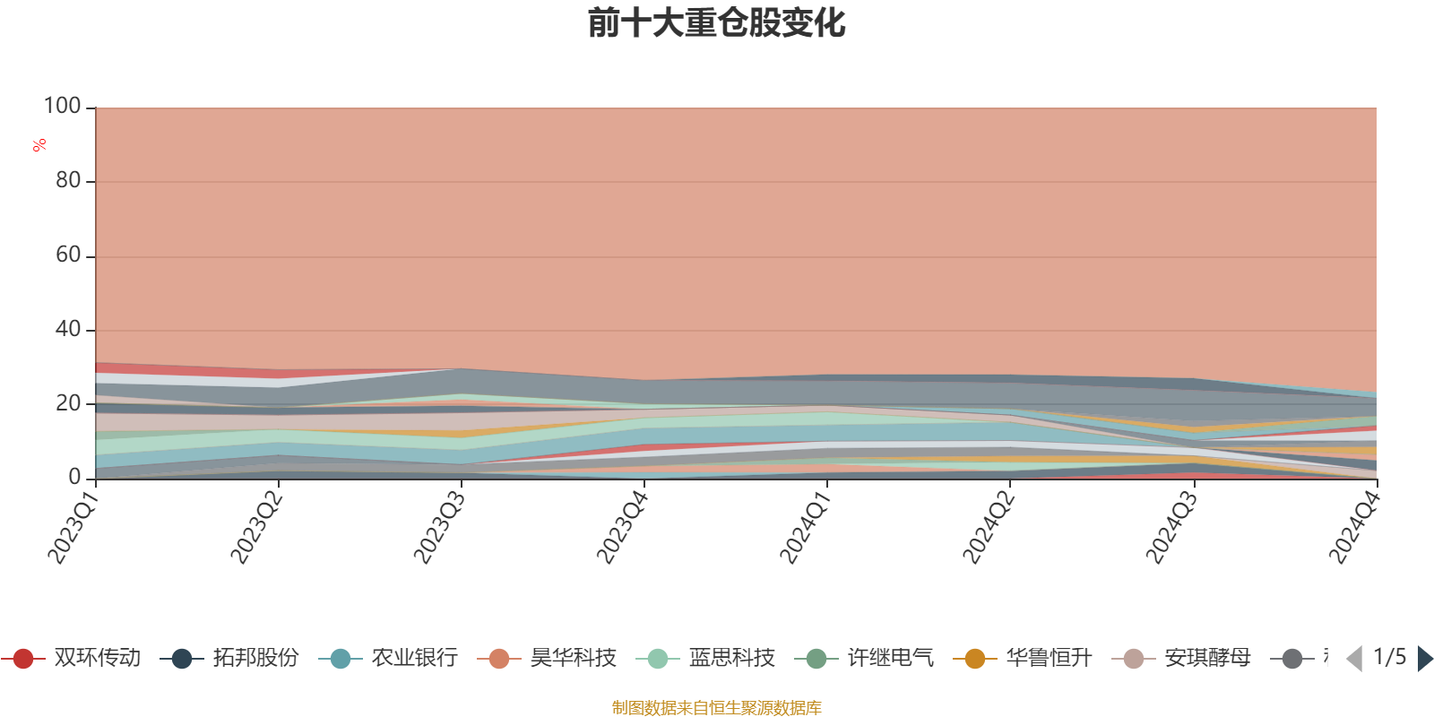 截至2024年四季度末,基金十大重仓股分别是海螺水泥、中国移动、中国电信、中国石油、安琪酵母、中信银行、瀚蓝环境、上海医药、宁德时代、顶点软件。