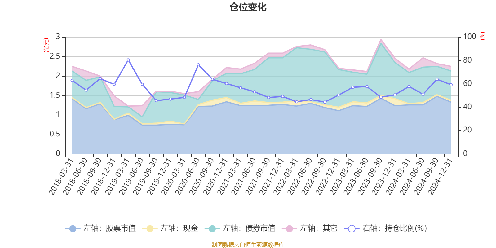 基金管理人在四季报中表示,四季度股票和债券双牛,基金维持了股票的投资比例,提高了纯债部分的久期。