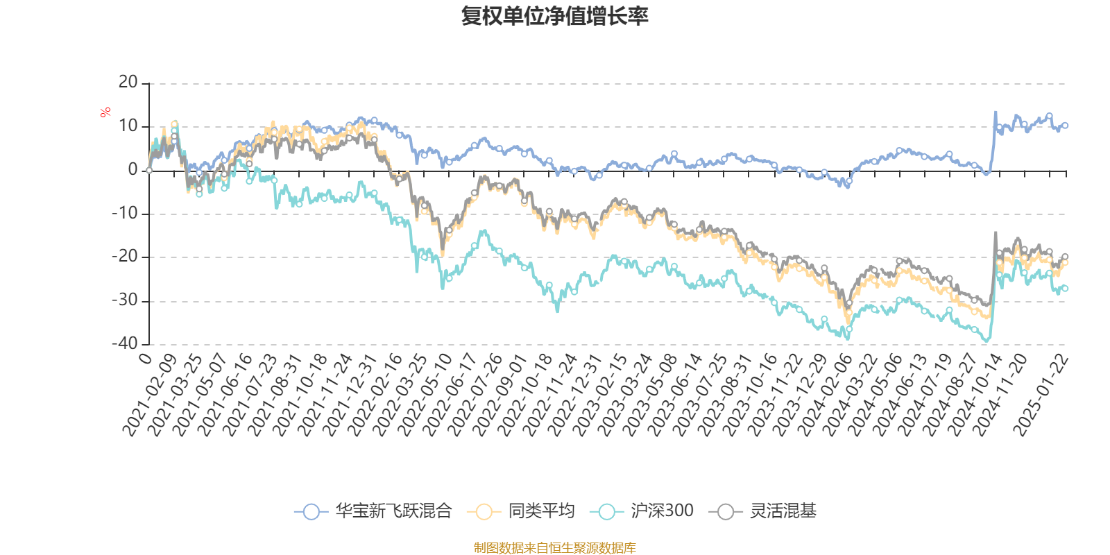 截至1月22日,华宝新飞跃混合近三个月复权单位净值增长率为-0.13%,位于同类可比基金306/920;近半年复权单位净值增长率为6.61%,位于同类可比基金516/920;近一年复权单位净值增长率为14.65%,位于同类可比基金434/920;近三年复权单位净值增长率为0.01%,位于同类可比基金78/898。