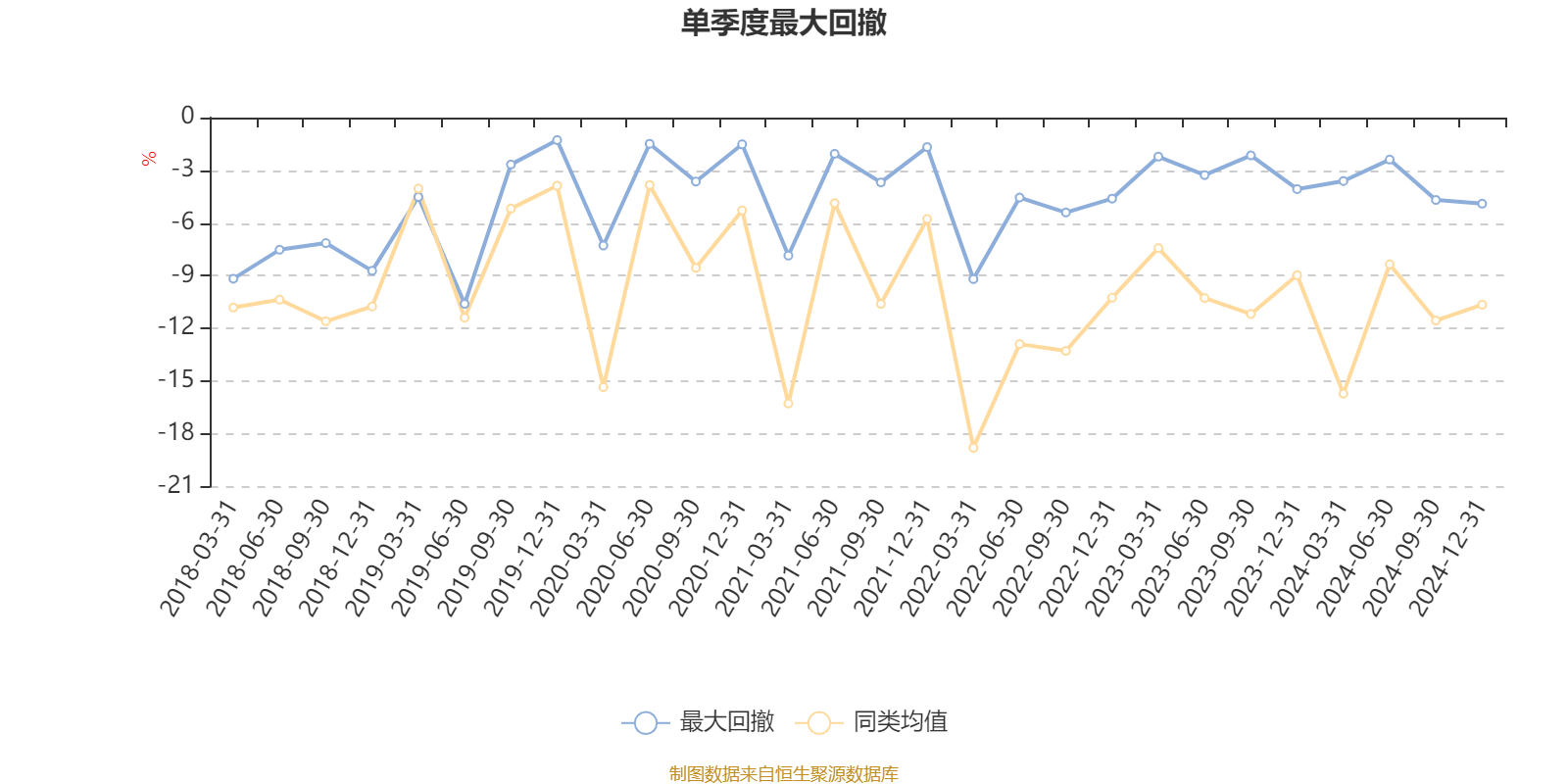 截至1月22日,基金近三年最大回撤为13.12%,同类可比基金排名892/901。单季度最大回撤出现在2019年二季度,为10.6%。