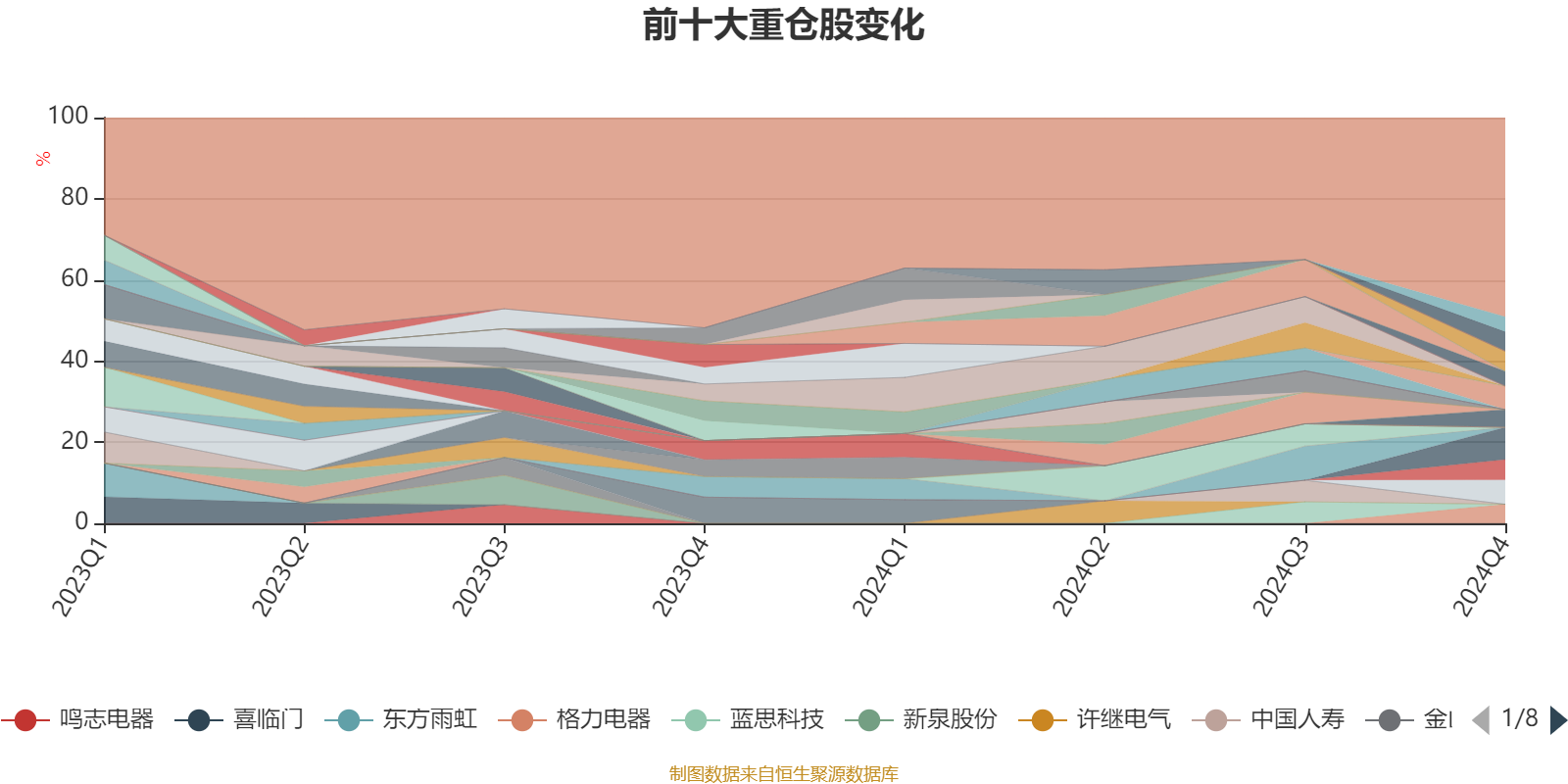 截至2024年四季度末,基金十大重仓股分别是寒武纪、中芯国际、东方海外国际、中兴通讯、宇通客车、歌尔股份、格力电器、小鹏汽车-W、精达股份、国联证券。