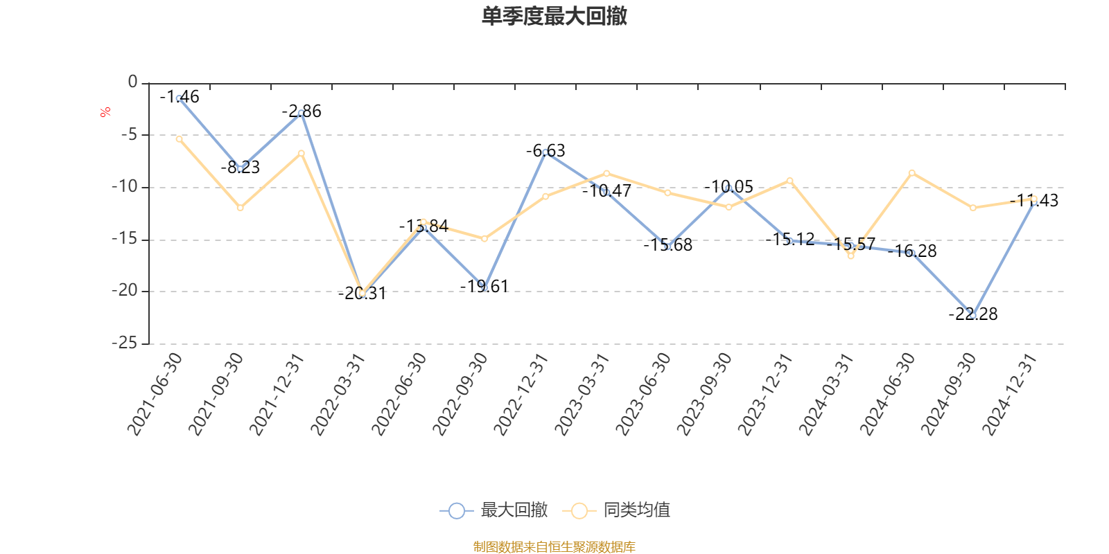 截至1月21日,基金近三年最大回撤为53.38%,同类可比基金排名55/443。单季度最大回撤出现在2024年三季度,为22.28%。