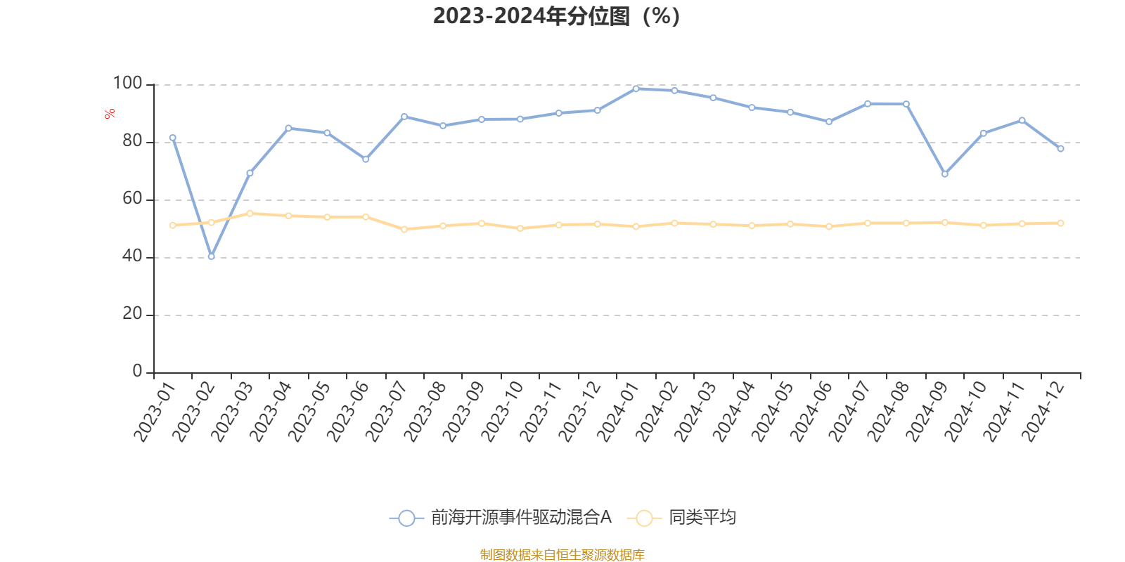 通过所选区间该基金净值增长率分位图,可以观察该基金与同类基金业绩比较情况。图为坐标原点到区间内某时点的净值增长率在同类基金中的分位数。
