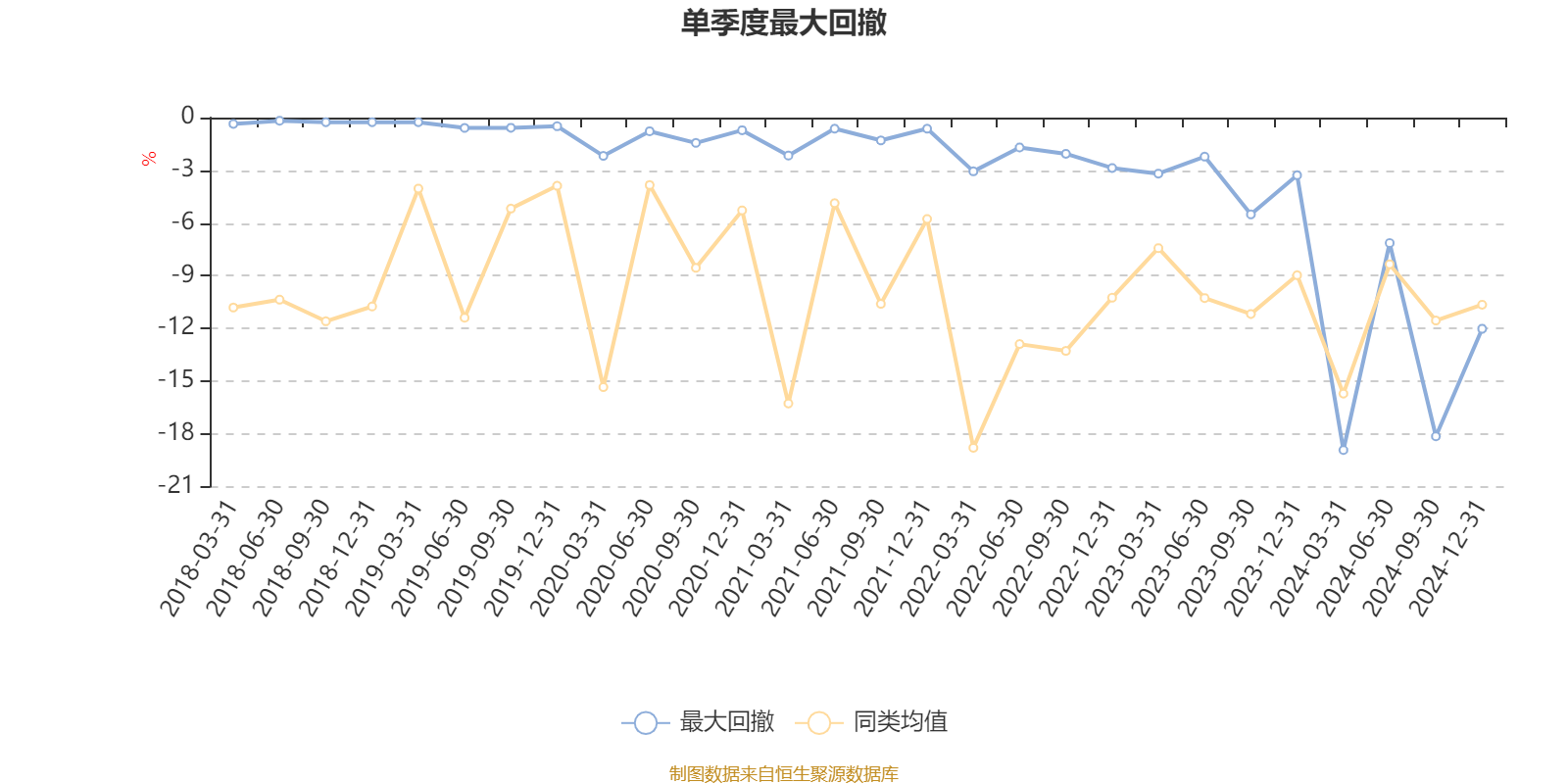 截至1月22日,基金近三年最大回撤为24.25%,同类可比基金排名819/901。单季度最大回撤出现在2024年一季度,为18.92%。