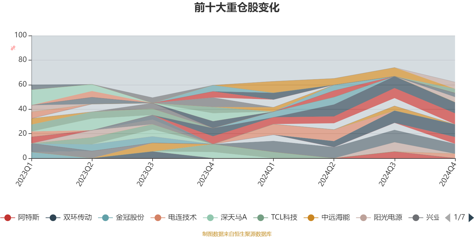 基金管理人在四季报中表示,从产业层面观察,AI 仍然是最明确的产业趋势,不同于过去的两年,2025 年一方面可以观察到海外 AI 走向模型-基础设施-应用的良性循环迭代,更重要的是国内互联网巨头也将陆续增加AI 投入,无论是算力基础设施还是应用发展国内的进步速度和后发优势都值得期待。随着需求的爆发,将为从晶圆代工到终端应用的整条产业链带来丰富的投资机会。除此之外,我们还关注智能汽车、新能源新技术等方向的机会。