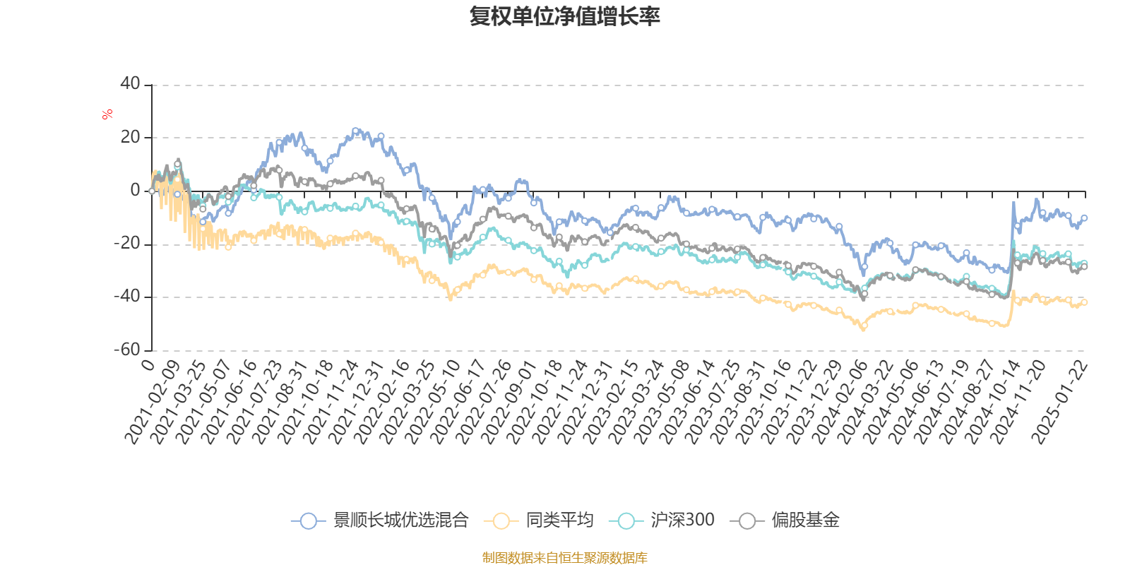 截至1月22日,景顺长城优选混合近三个月复权单位净值增长率为0.87%,位于同类可比基金30/135;近半年复权单位净值增长率为17.01%,位于同类可比基金13/135;近一年复权单位净值增长率为19.96%,位于同类可比基金58/135;近三年复权单位净值增长率为-20.71%,位于同类可比基金51/127。
