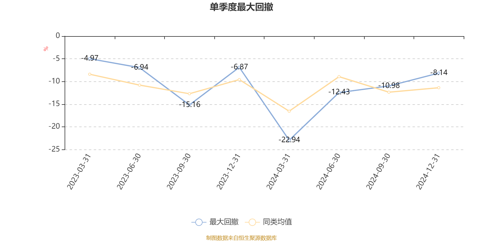截至1月22日,基金成立以来最大回撤为33.43%。单季度最大回撤出现在2024年一季度,为22.94%。