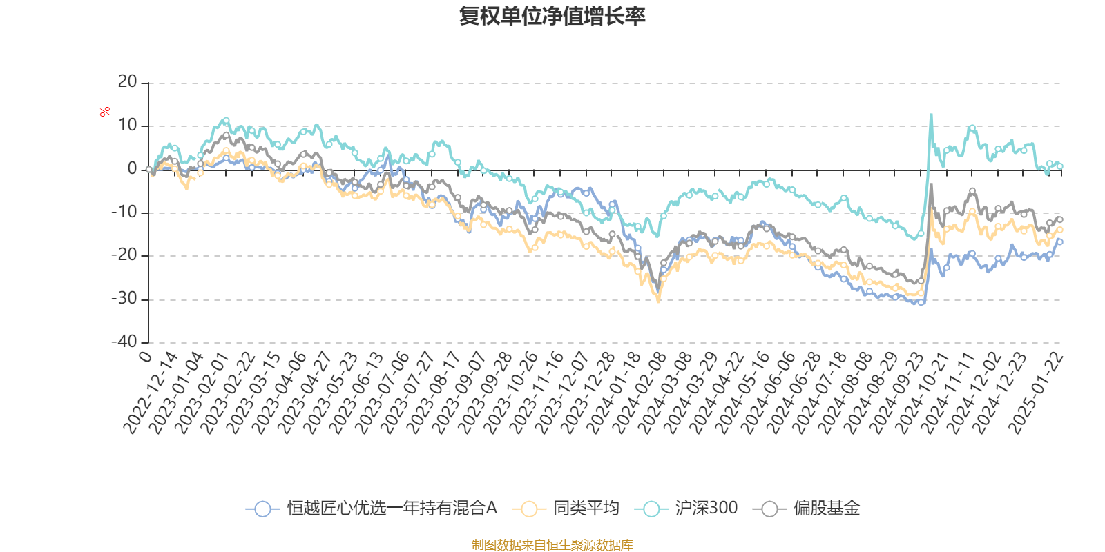 截至1月22日,恒越匠心优选一年持有混合A近三个月复权单位净值增长率为5.79%,位于同类可比基金62/536;近半年复权单位净值增长率为11.53%,位于同类可比基金200/536;近一年复权单位净值增长率为6.20%,位于同类可比基金375/500。