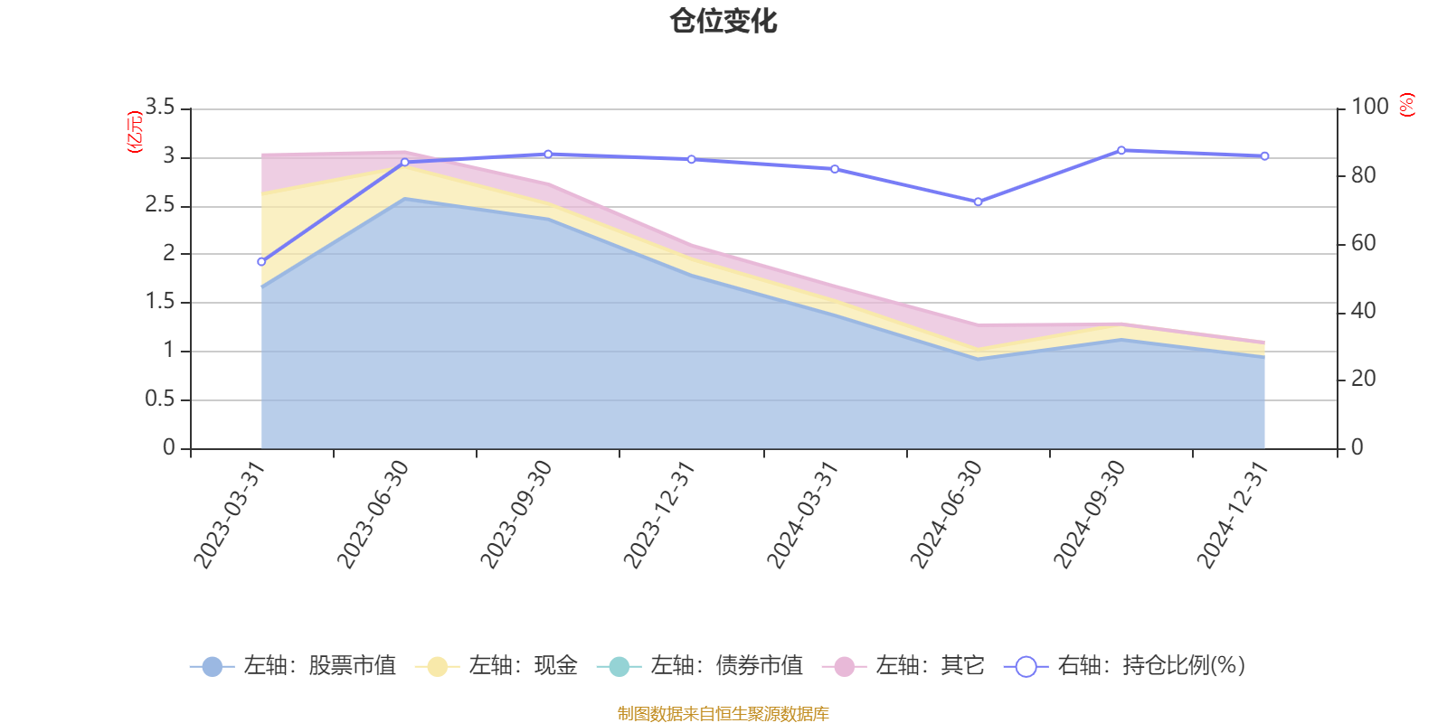 据定期报告数据统计,成立以来平均股票仓位为79.91%,同类平均为83.34%。2024年三季度末基金达到87.7%的最高仓位,2023年一季度末最低,为54.96%。