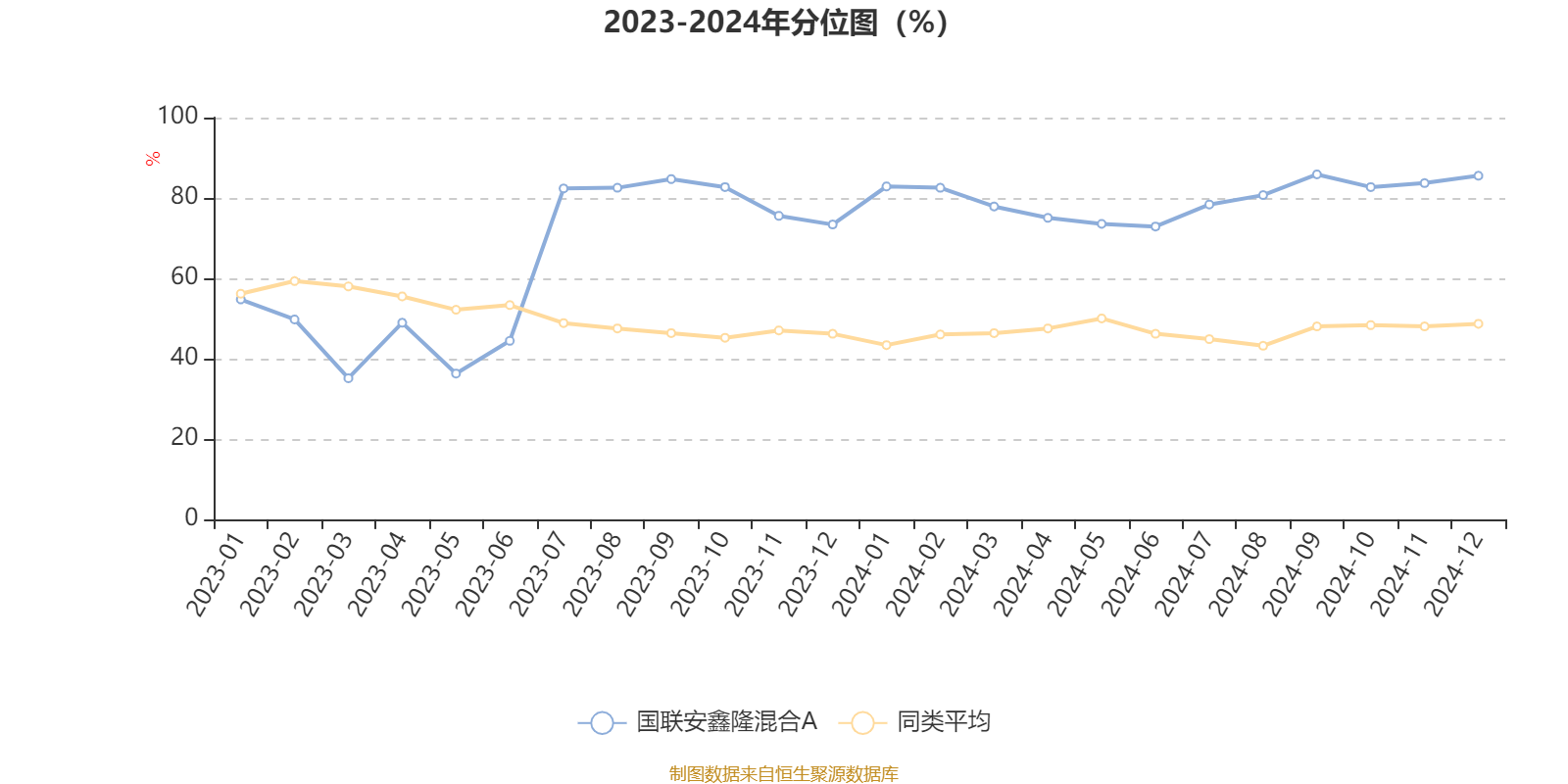 通过所选区间该基金净值增长率分位图,可以观察该基金与同类基金业绩比较情况。图为坐标原点到区间内某时点的净值增长率在同类基金中的分位数。