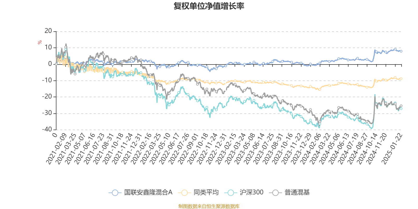 截至1月22日,国联安鑫隆混合A近三个月复权单位净值增长率为0.56%,位于同类可比基金426/670;近半年复权单位净值增长率为4.38%,位于同类可比基金244/670;近一年复权单位净值增长率为8.59%,位于同类可比基金222/664;近三年复权单位净值增长率为5.22%,位于同类可比基金158/525。