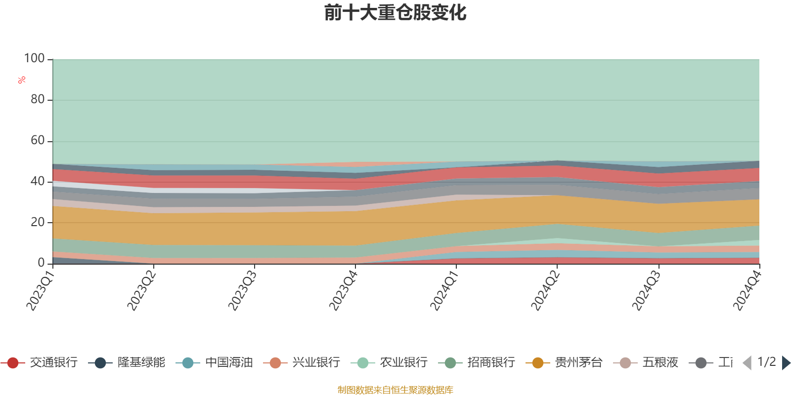 且持股标的较为稳定。截至2024年四季度末,基金十大重仓股分别是贵州茅台、招商银行、中国平安、工商银行、中信证券、长江电力、兴业银行、中国海油、交通银行、农业银行。