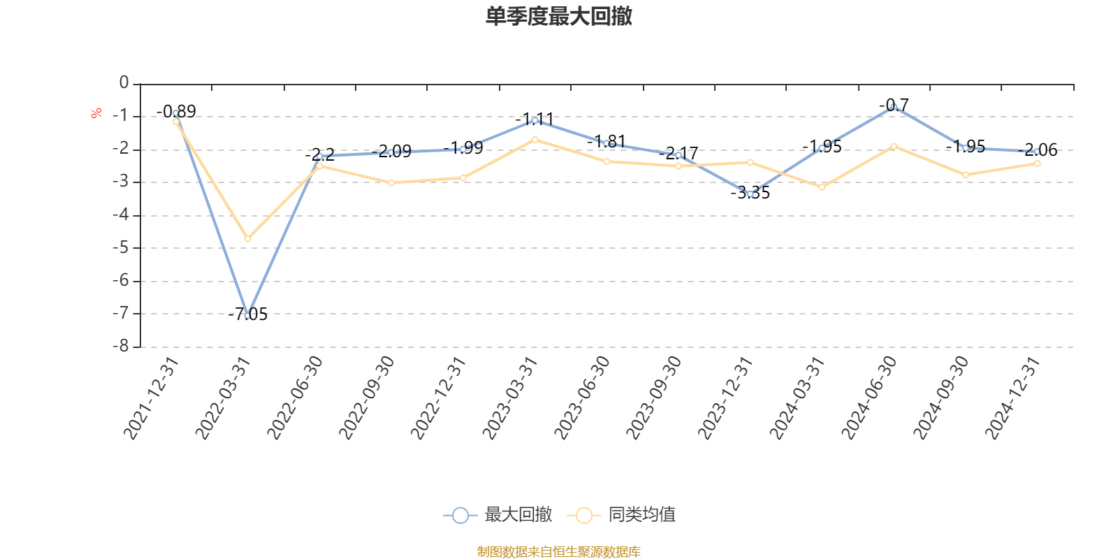 截至1月22日,基金近三年最大回撤为5.78%,同类可比基金排名347/502。单季度最大回撤出现在2022年一季度,为7.05%。