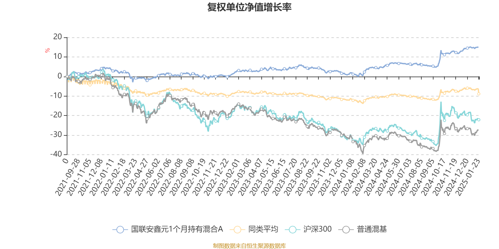 截至1月22日,国联安鑫元1个月持有混合A近三个月复权单位净值增长率为2.58%,位于同类可比基金70/670;近半年复权单位净值增长率为7.61%,位于同类可比基金72/670;近一年复权单位净值增长率为14.82%,位于同类可比基金26/664;近三年复权单位净值增长率为11.63%,位于同类可比基金28/525。