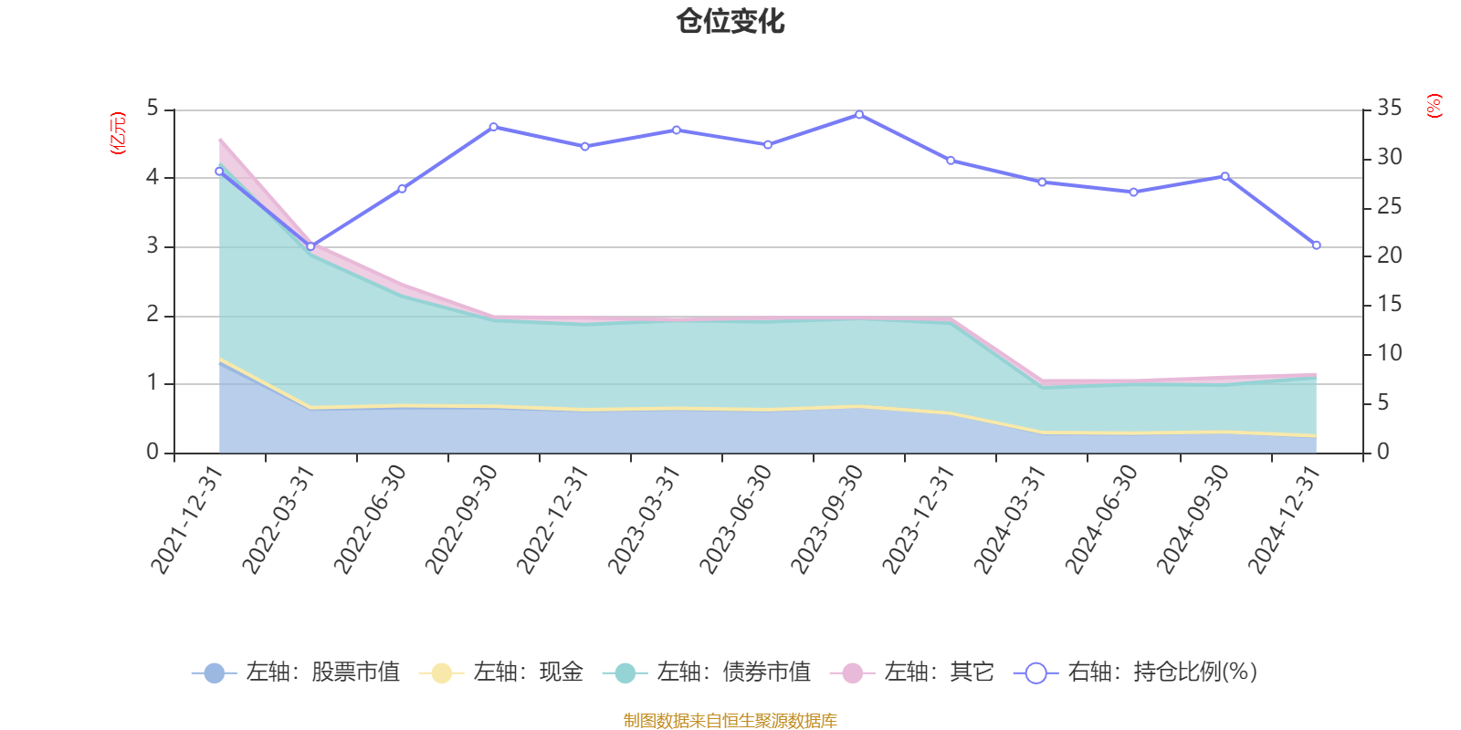 据定期报告数据统计,近三年平均股票仓位为28.72%,同类平均为18.74%。2023年三季度末基金达到34.49%的最高仓位,2022年一季度末最低,为21.04%。