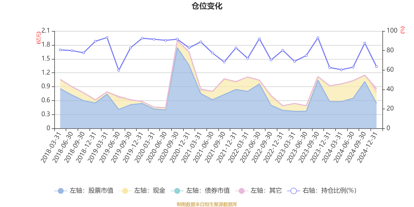 据定期报告数据统计,近三年平均股票仓位为74.05%,同类平均为84.97%。2019年一季度末基金达到93.33%的最高仓位,2019年上半年末最低,为59.67%。