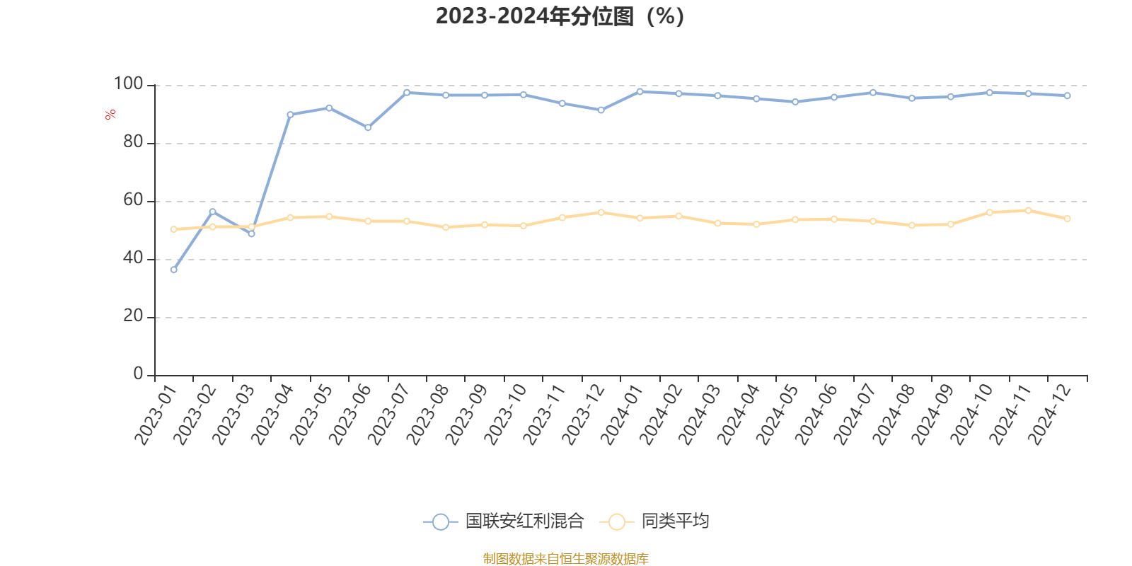 通过所选区间该基金净值增长率分位图,可以观察该基金与同类基金业绩比较情况。图为坐标原点到区间内某时点的净值增长率在同类基金中的分位数。