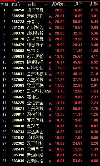 AI智能概念集体爆发,汉得信息、杰创智能、思特奇、新炬网络、南兴股份等多股涨停。