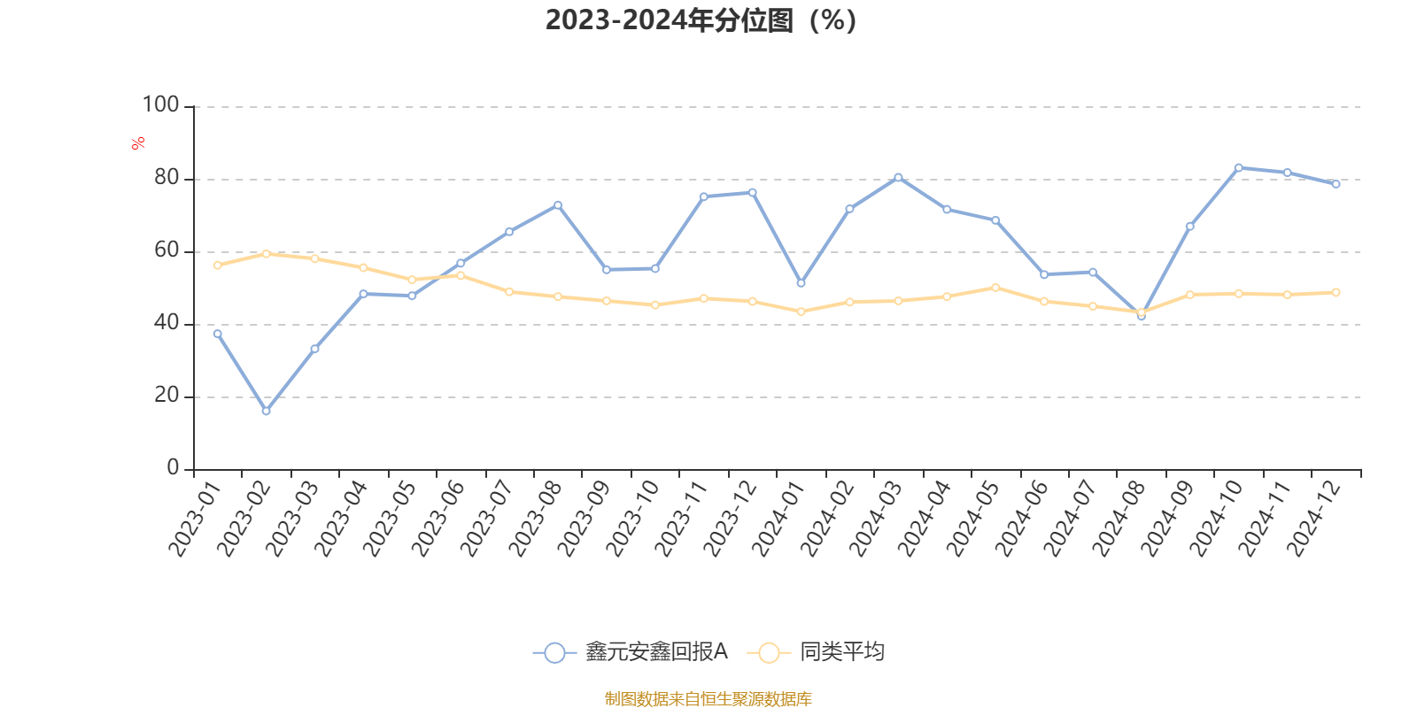 通过所选区间该基金净值增长率分位图,可以观察该基金与同类基金业绩比较情况。图为坐标原点到区间内某时点的净值增长率在同类基金中的分位数。