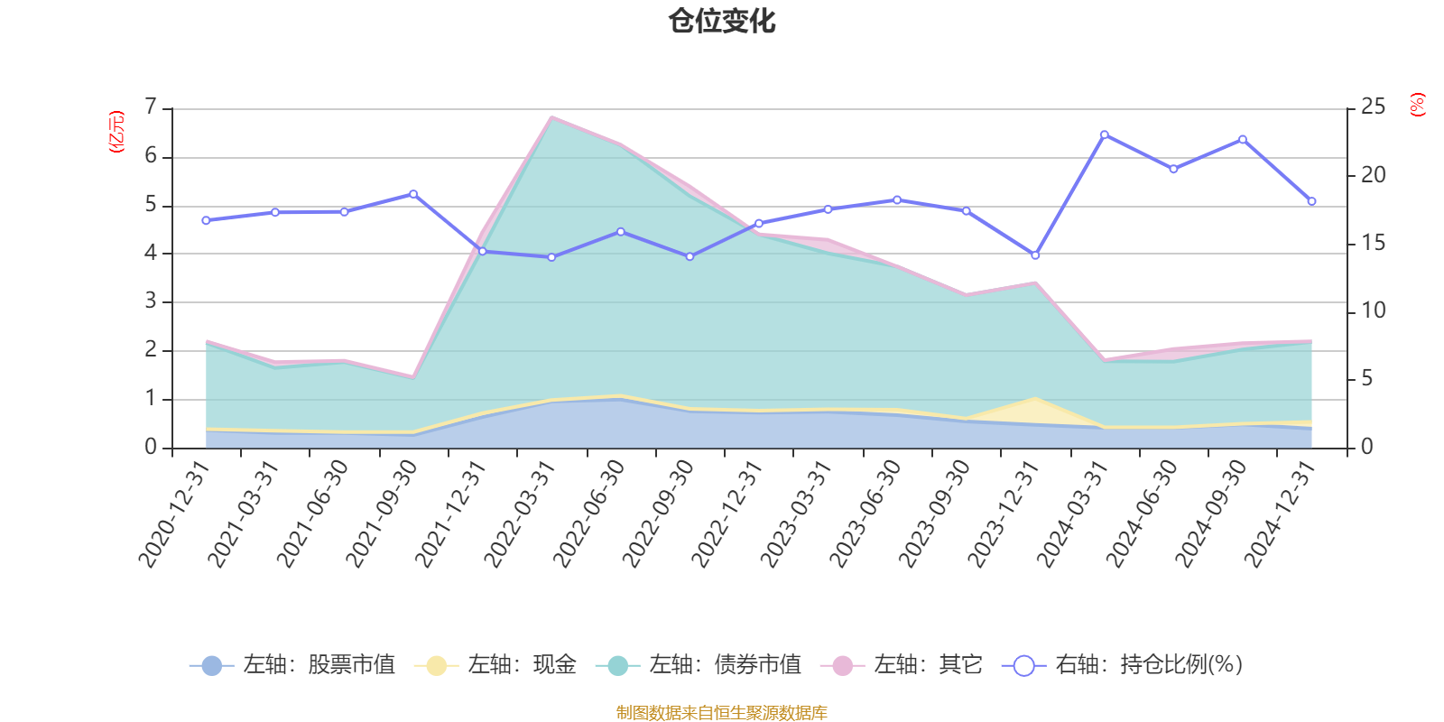 据定期报告数据统计,近三年平均股票仓位为17.71%,同类平均为18.74%。2024年一季度末基金达到23.06%的最高仓位,2022年一季度末最低,为14.04%。