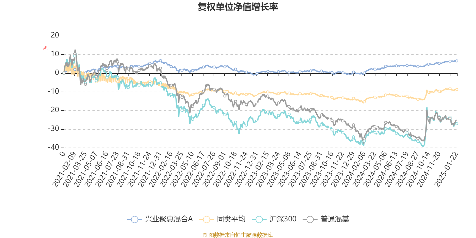 截至1月22日,兴业聚惠混合A近三个月复权单位净值增长率为1.62%,位于同类可比基金185/670;近半年复权单位净值增长率为2.32%,位于同类可比基金462/670;近一年复权单位净值增长率为7.14%,位于同类可比基金330/664;近三年复权单位净值增长率为1.06%,位于同类可比基金305/525。