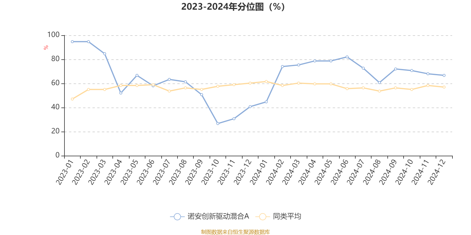 通过所选区间该基金净值增长率分位图,可以观察该基金与同类基金业绩比较情况。图为坐标原点到区间内某时点的净值增长率在同类基金中的分位数。