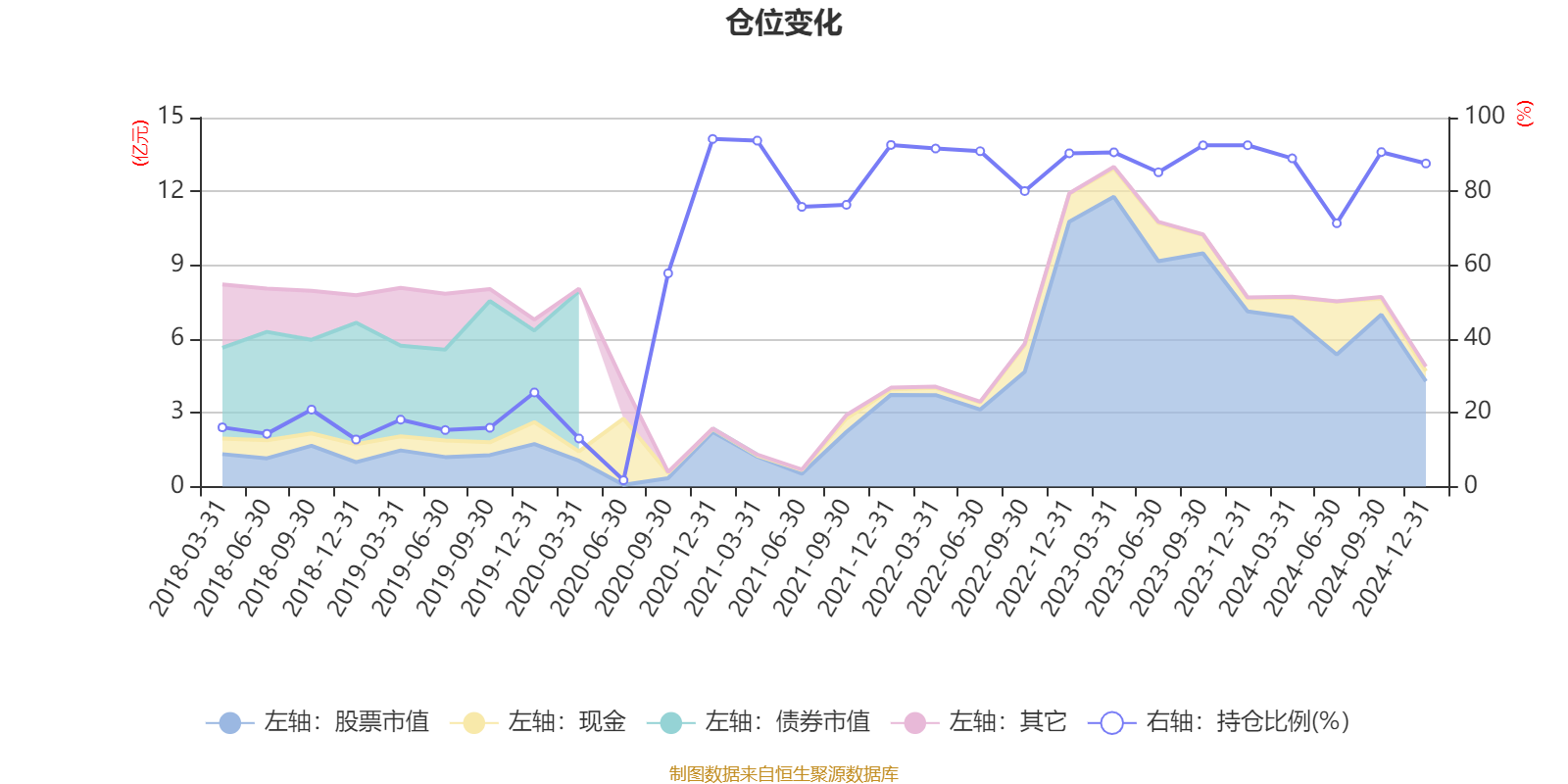 据定期报告数据统计,近三年平均股票仓位为87.69%,同类平均为84.66%。2020年末基金达到94.2%的最高仓位,2020年上半年末最低,为1.71%。