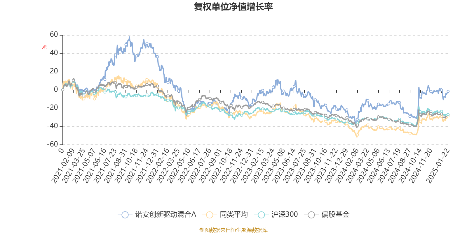 截至1月22日,诺安创新驱动混合A近三个月复权单位净值增长率为1.14%,位于同类可比基金138/202;近半年复权单位净值增长率为14.55%,位于同类可比基金158/202;近一年复权单位净值增长率为42.42%,位于同类可比基金51/191;近三年复权单位净值增长率为-20.25%,位于同类可比基金84/130。