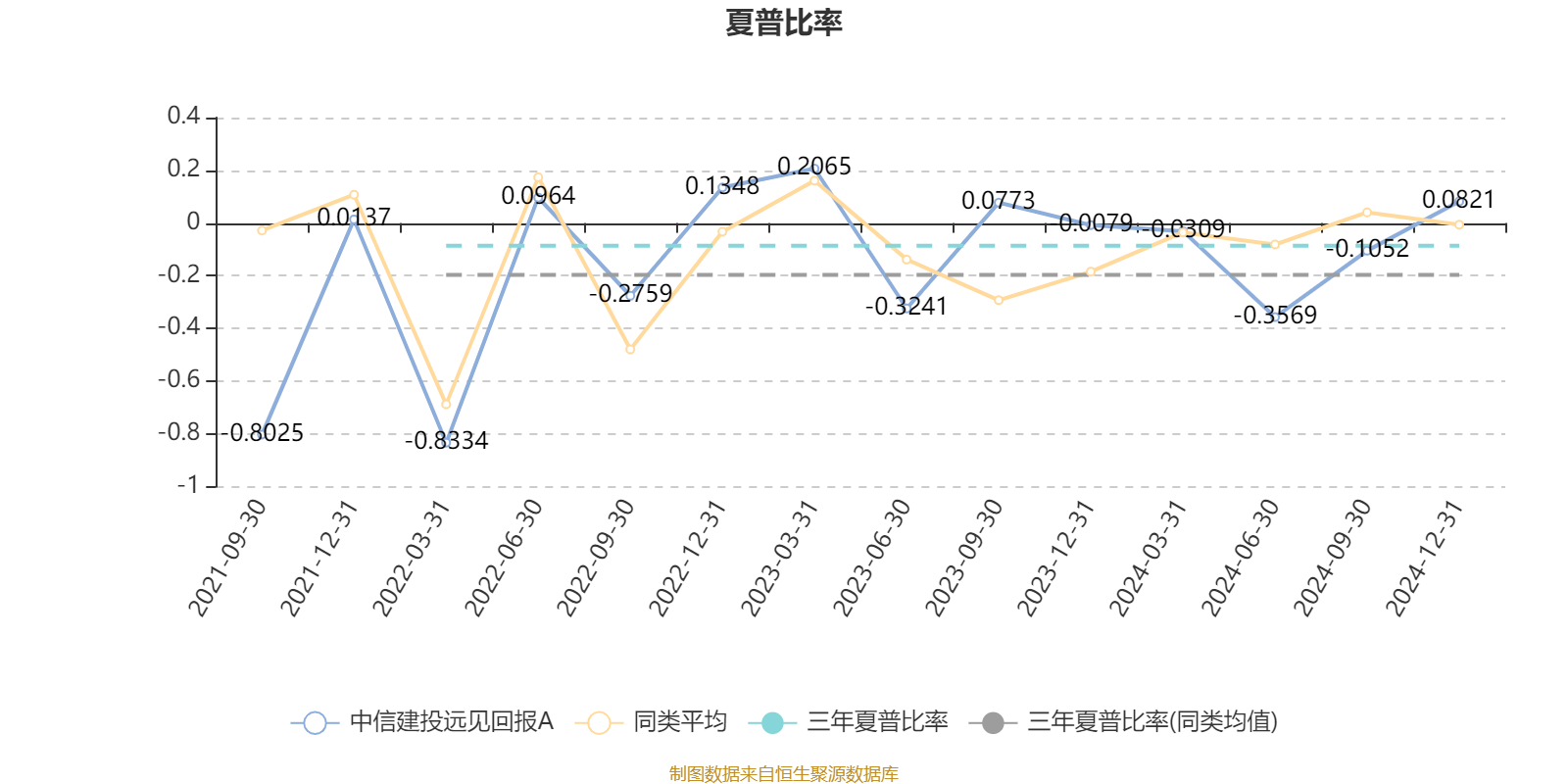 截至12月31日,基金近三年夏普比率为-0.086,位于同类可比基金146/437。
