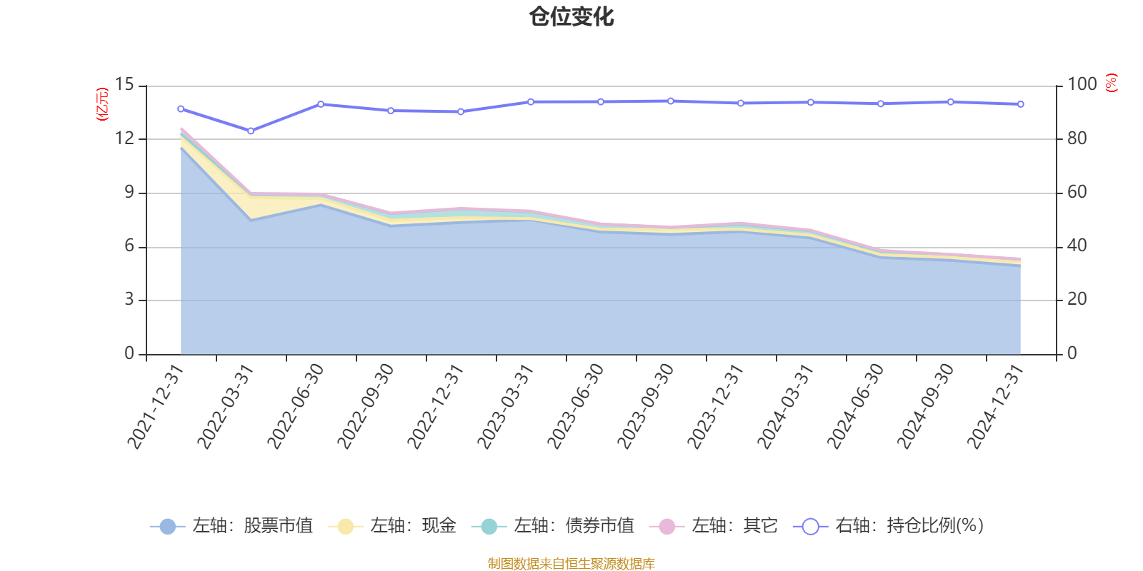 据定期报告数据统计,近三年平均股票仓位为92.26%,同类平均为84.97%。2023年三季度末基金达到94.26%的最高仓位,2022年一季度末最低,为83.14%。