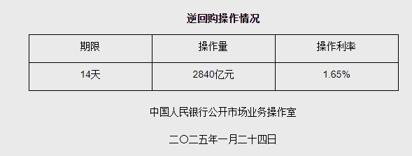中新网1月24日电据央行网站消息,为维护春节前流动性充裕,2025年1月24日中国人民银行以固定利率、数量招标方式开展了2840亿元逆回购操作。具体情况如下: