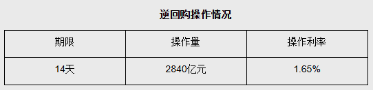 央行开展2840亿元14天期逆回购操作 净投放1790亿元