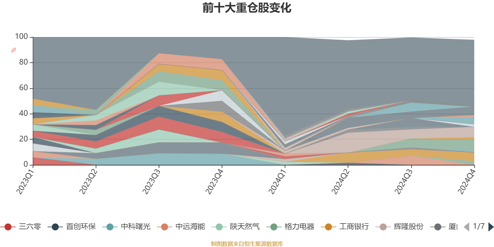 截至2024年四季度末,基金十大重仓股分别是江苏金租、中国移动、工商银行、建设银行、华电国际电力股份、格力电器、冀中能源、长江传媒、粤高速A、华邦健康。