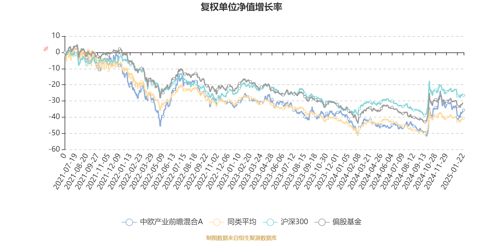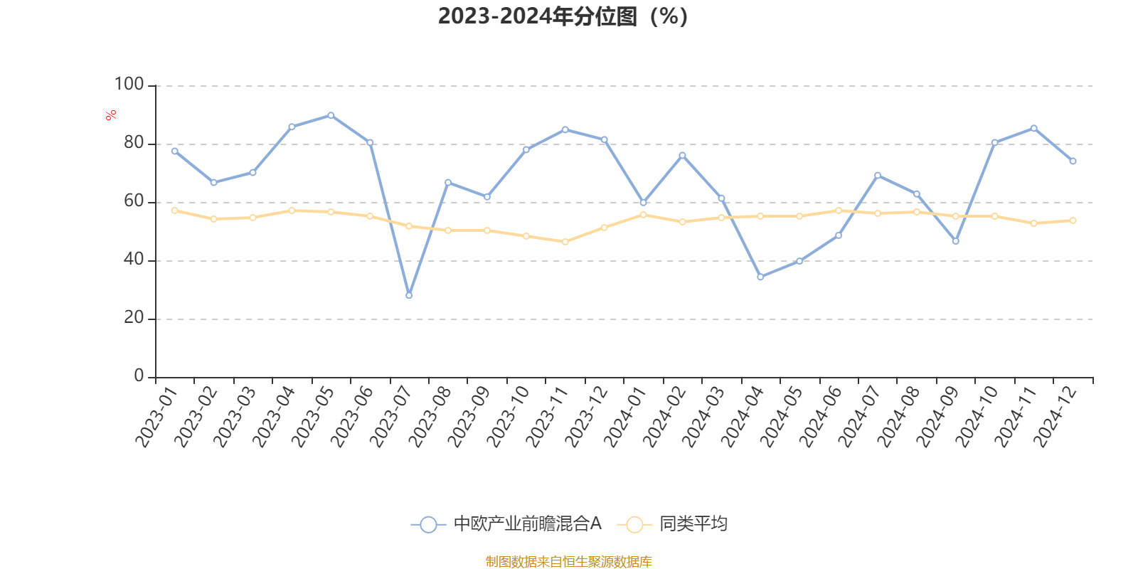 截至1月22日,中欧产业前瞻混合A近三个月复权单位净值增长率为-0.94%,位于同类可比基金56/210;近半年复权单位净值增长率为12.91%,位于同类可比基金57/210;近一年复权单位净值增长率为22.45%,位于同类可比基金52/210;近三年复权单位净值增长率为-16.18%,位于同类可比基金47/194。
