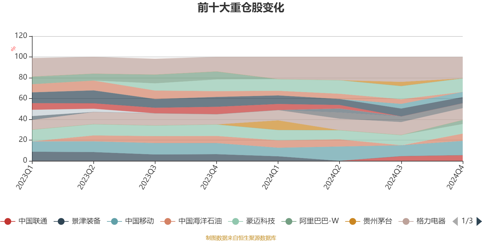该基金持股集中度较高,近2年前十大重仓股集中度长期超过60%。截至2024年四季度末,基金十大重仓股分别是中国移动、美的集团、格力电器、豪迈科技、中国海洋石油、中兴通讯、中国联通、福耀玻璃、华域汽车、阿里巴巴-W。