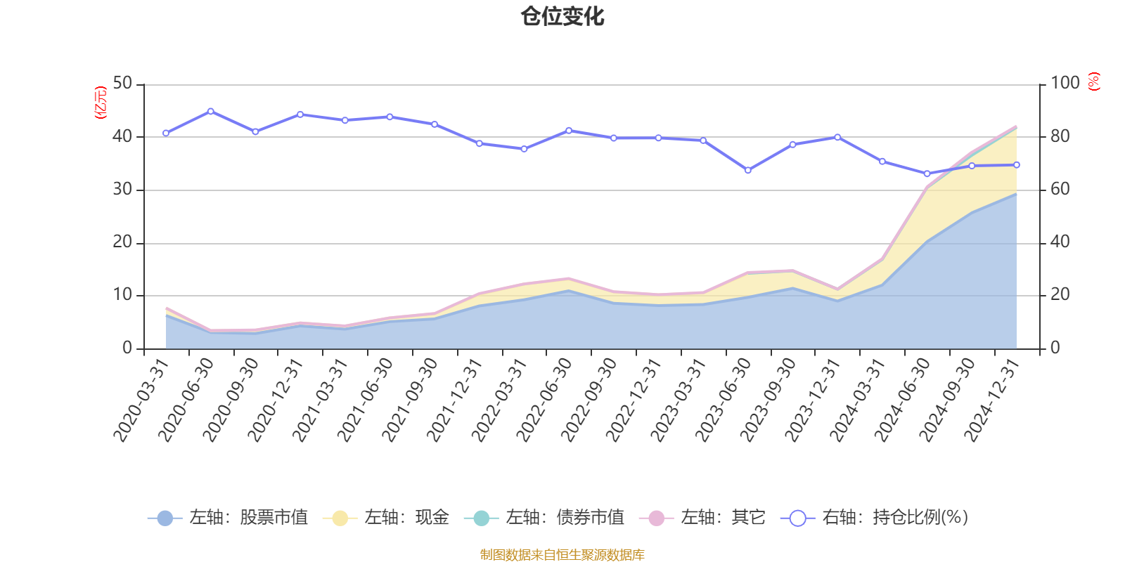 据定期报告数据统计,近三年平均股票仓位为74.74%,同类平均为85.84%。2020年上半年末基金达到89.79%的最高仓位,2024年上半年末最低,为66.23%。