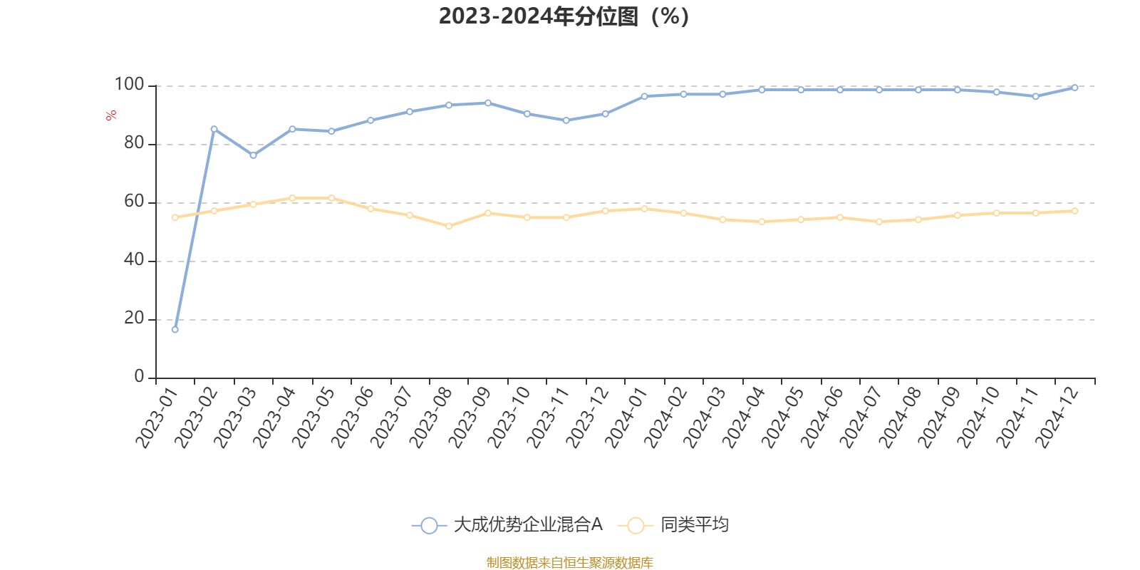 通过所选区间该基金净值增长率分位图,可以观察该基金与同类基金业绩比较情况。图为坐标原点到区间内某时点的净值增长率在同类基金中的分位数。