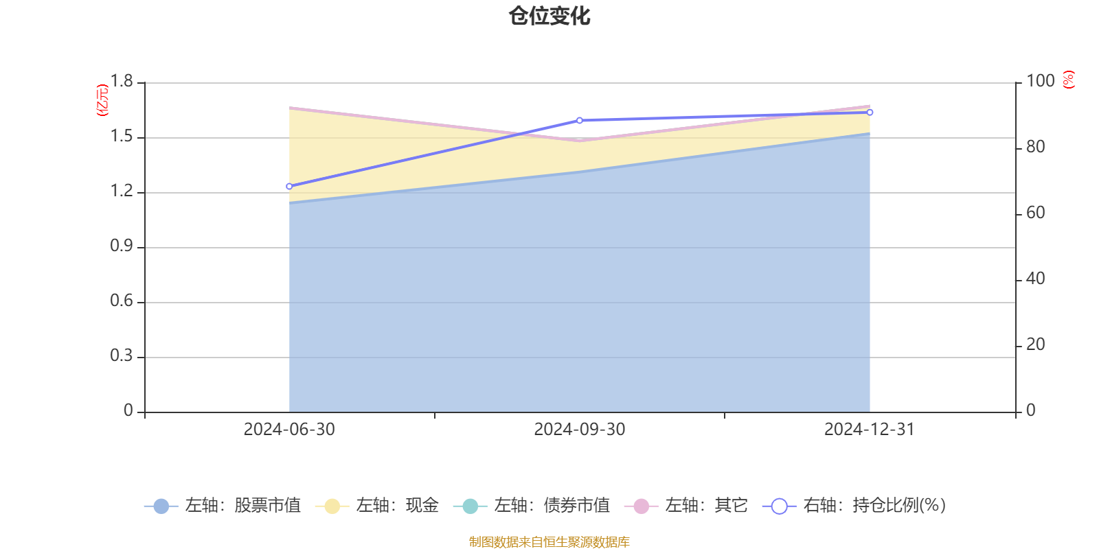 据定期报告数据统计,成立以来平均股票仓位为82.59%,同类平均为84.96%。2024年末基金达到90.91%的最高仓位,2024年上半年末最低,为68.43%。