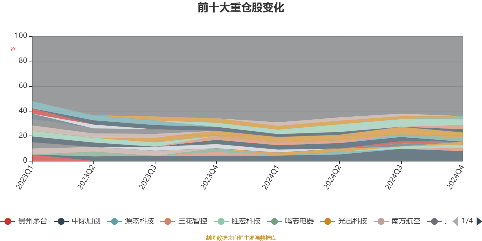 截至2024年四季度末,基金十大重仓股分别是中际旭创、新易盛、天孚通信、水晶光电、歌尔股份、拓普集团、三花智控、胜宏科技、太辰光、光迅科技。