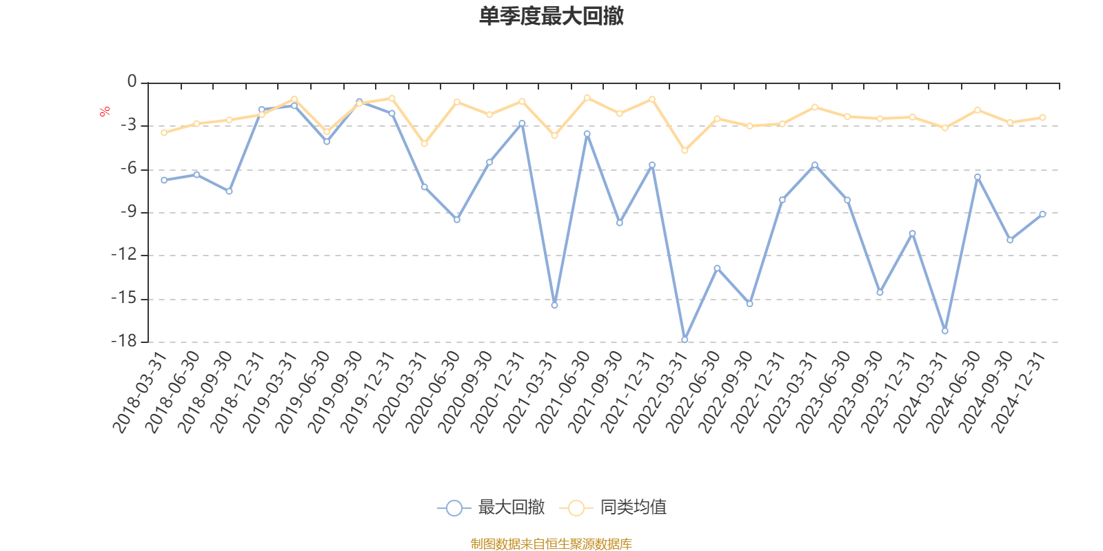 截至1月22日,基金近三年最大回撤为32.96%,同类可比基金排名4/502。单季度最大回撤出现在2022年一季度,为17.84%。